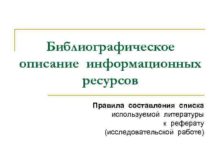 Библиографическое описание информационных ресурсов Правила составления списка используемой