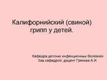 Калифорнийский свиной грипп у детей Кафедра детских инфекционных
