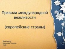 Правила международной вежливости европейские страны Выполнила Макалова Татьяна
