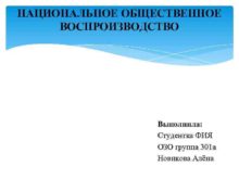 НАЦИОНАЛЬНОЕ ОБЩЕСТВЕННОЕ ВОСПРОИЗВОДСТВО Выполнила Студентка ФИЯ ОЗО группа