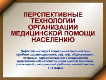 ПЕРСПЕКТИВНЫЕ ТЕХНОЛОГИИ ОРГАНИЗАЦИИ МЕДИЦИНСКОЙ ПОМОЩИ НАСЕЛЕНИЮ Директор института