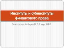 Институты и субинституты финансового права Подготовил Хабиров М