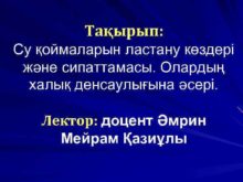 Тақырып Су қоймаларын ластану көздері және сипаттамасы Олардың