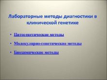Лабораторные методы диагностики в клинической генетике Цитогенетические