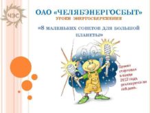 ОАО ЧЕЛЯБЭНЕРГОСБЫТ УРОКИ ЭНЕРГОСБЕРЕЖЕНИЯ 8 МАЛЕНЬКИХ СОВЕТОВ