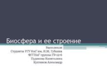 Биосфера и ее строение Выполнили Студенты РГУ Ни