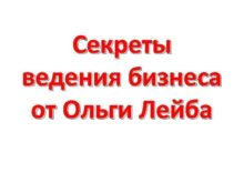 Секреты ведения бизнеса от Ольги Лейба Ольга