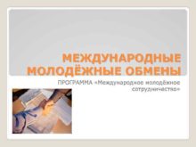 МЕЖДУНАРОДНЫЕ МОЛОДЁЖНЫЕ ОБМЕНЫ ПРОГРАММА Международное молодёжное сотрудничество
