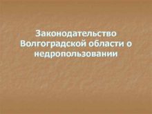 Законодательство Волгоградской области о недропользовании Нормативное регулирование
