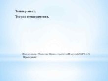 Темперамент Теории темперамента Выполнила Сиднева Ирина студентка II