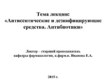Тема лекции Антисептические и дезинфицирующие средства Антибиотики Лектор