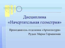Дисциплина Начертательная геометрия Преподаватель отделения Архитектура Рудых Мария