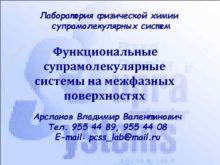Лаборатория физической химии супрамолекулярных систем Функциональные супрамолекулярные системы