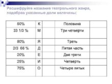 Расшифруйте название театрального жанра подобрав указанные доли велечины