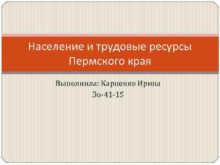 Население и трудовые ресурсы Пермского края Выполнила Карпенко
