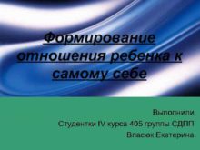Формирование отношения ребенка к самому себе Выполнили Студентки
