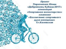 Проект Пархоменко Юлии Доброволец Кубани-2017 номинация Спортивное волонтерство
