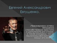Евгений Александрович Евтушенко Чрезмерному успеху Евтушенко способствовала простота