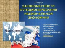 ЛЕКЦИЯ ЗАКОНОМЕРНОСТИ ФУНКЦИОНИРОВАНИЯ НАЦИОНАЛЬНОЙ ЭКОНОМИКИ Водопьянова Наталья Александровна