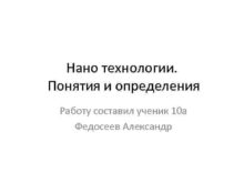 Нано технологии Понятия и определения Работу составил ученик