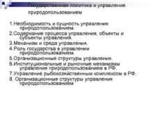 Государственная политика и управление природопользованием 1 Необходимость