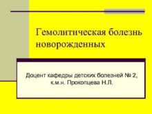 Гемолитическая болезнь новорожденных Доцент кафедры детских болезней
