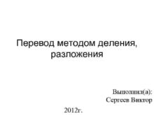 Перевод методом деления разложения Выполнил а Сергеев Виктор 2012