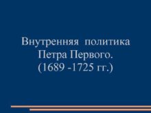 Внутренняя политика Петра Первого 1689 -1725 гг
