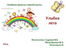 Семейные проекты старшей группы Улыбка лета 2014 Воспитатели