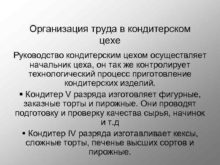 Организация труда в кондитерском цехе Руководство кондитерским цехом