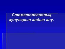 Стоматологиялық аулуларын алдын алу Тақырып Мамандыққа кіріспе