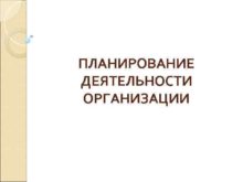 ПЛАНИРОВАНИЕ ДЕЯТЕЛЬНОСТИ ОРГАНИЗАЦИИ Планирование — процесс определения