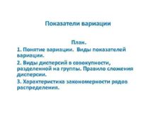Показатели вариации План 1 Понятие вариации Виды показателей