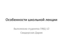 Oсобенности школьной лекции Выполнила студентка ПФД-12 Свидерская Дария