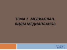 ТЕМА 2 МЕДИАПЛАН ВИДЫ МЕДИАПЛАНОВ К с н