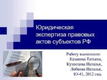 Юридическая экспертиза правовых актов субъектов РФ Работу выполнили