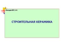 Лекция 5 -6 СТРОИТЕЛЬНАЯ КЕРАМИКА Лекция