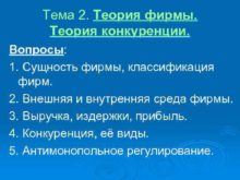 Тема 2 Теория фирмы Теория конкуренции Вопросы 1