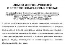АНАЛИЗ МНОГОЗНАЧНОСТЕЙ В ЕСТЕСТВЕННО-ЯЗЫКОВЫХ ТЕКСТАХ Кучуганов Валерий