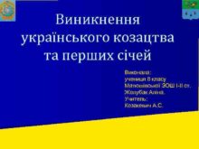 Виникнення українського козацтва та перших січей Виконала учениця