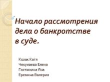 Начало рассмотрения дела о банкротстве в суде Козак