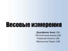 Весовые измерения Дорофеева Анна 10 А Пятилеткина Алина