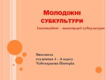 МОЛОДІЖНІ СУБКУЛЬТУРИ Інноваційно авангардні субкультури Виконала студентка