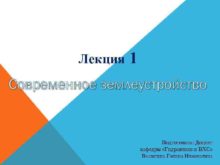Лекция 1 Современное землеустройство Подготовила Доцент кафедры Гидравлики