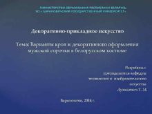Декоративно-прикладное искусство Тема Варианты кроя и декоративного оформления