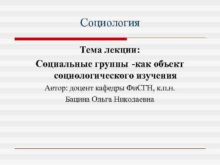 Социология Тема лекции Социальные группы -как объект социологического