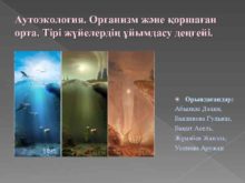 Аутоэкология Организм және қоршаған орта Тірі жүйелердің ұйымдасу