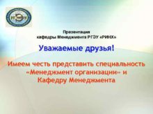 Презентация кафедры Менеджмента РГЭУ РИНХ Уважаемые друзья Имеем