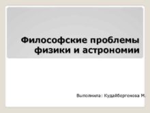 Философские проблемы физики и астрономии Выполнила Кудайбергенова М