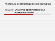 Мировые информационные ресурсы Лекция 8 Объектно-ориентированные возможности РНР